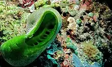 Hemovanadin is a pale green vanabin protein found in the blood cells, called vanadocytes, of ascidians (sea squirts) and other organisms (particularly sea organisms).[1] It is one of the few known vanadium-containing proteins.[2][3] The German chemist Martin Henze first detected vanadium in ascidians (sea squirts) in 1911.[4][5] Unlike hemocyanin and hemoglobin, hemovanadin is not an oxygen carrier.[6][7]