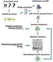 20. Medina J, Fernández-Salazar LI, García-Buey L, Moreno-Otero R (August 2004). "Approach to the pathogenesis and treatment of nonalcoholic steatohepatitis". Diabetes Care. 27 (8): 2057–66. doi:10.2337/diacare.27.8.2057. PMID 15277442.
