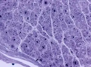 Hereditary motor and sensory neuropathies (HMSN) is a name sometimes given to a group of different neuropathies which are all characterized by their impact upon both afferent and efferent neural communication. HMSN are characterised by atypical neural development and degradation of neural tissue. The two common forms of HMSN are either hypertrophic demyelinated nerves or complete atrophy of neural tissue. Hypertrophic condition causes neural stiffness and a demyelination of nerves in the peripheral nervous system, and atrophy causes the breakdown of axons and neural cell bodies.[1] In these disorders, a patient experiences progressive muscle atrophy and sensory neuropathy of the extremities.[2]