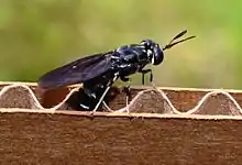 Hermetia illucens, the black soldier fly, is a common and widespread fly of the family Stratiomyidae.
