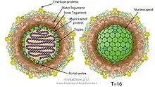 11. Brown JC, Newcomb WW (August 2011). "Herpesvirus capsid assembly: insights from structural analysis". Current Opinion in Virology. 1 (2): 142–9. doi:10.1016/j.coviro.2011.06.003. PMC 3171831. PMID 21927635.