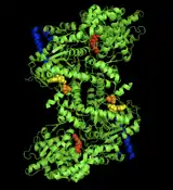 Glycogen storage disease type VI (GSD VI) is a type of glycogen storage disease caused by a deficiency in liver glycogen phosphorylase or other components of the associated phosphorylase cascade system.[2] It is also known as "Hers' disease", after Henri G. Hers, who characterized it in 1959.[3] The scope of GSD VI now also includes glycogen storage disease type VIII,[2] IX[2] (caused by phosphorylase b kinase deficiency) and X[2] (deficiency protein kinase A).