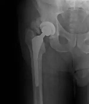 | Heterotopic ossification around the hip joint in a patient who has undergone hip arthroplasty |