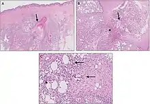 - Xu LY, Wright DR, Mahmoud BH, Ozog DM, Mehregan DA, Hamzavi IH (January 2011). "Histopathologic study of hidradenitis suppurativa following long-pulsed 1064-nm Nd:YAG laser treatment". Archives of Dermatology. 147 (1): 21–8. doi:10.1001/archdermatol.2010.245. PMID 20855672.