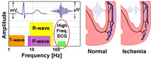 Research efforts during the 80-90s have shown that myocardial ischemia also induces changes to the depolarization phase and confirmed the use of HFQRS-RMS as a quantitative diagnostic measure of supply myocardial ischemia[5][6][7] and demand myocardial (stress-induced) ischemia.[8]