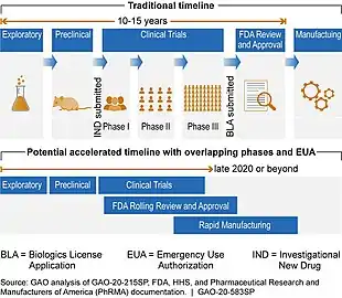 - "The drug development process". U.S. Food and Drug Administration (FDA). 4 January 2018. Archived from the original on 22 February 2020. Retrieved 12 April 2020.