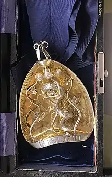 The president's medal was initiated by William Hartstorn, who was president between 1973 and 1975. It was made by Kim Southam and donated by Maurice Newbold and officers of the section in 1976.[2]