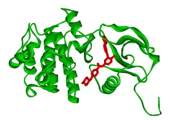 - Corbin AS, Buchdunger E, Pascal F, Druker BJ (August 2002). "Analysis of the structural basis of specificity of inhibition of the Abl kinase by STI571". J. Biol. Chem. 277 (35): 32214–9. doi:10.1074/jbc.M111525200. PMID 12077114.