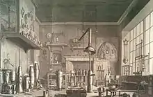 Not until the first dispensatories were there books disseminating more comprehensive information on pharmaceuticals: guidance on uses for drugs, how and in what situations to employ them, experience with best practices, etc. "This kind of book, the dispensatory, became something of a British specialty in the late seventeenth and eighteenth century."[25] These dispensatories, chief among them William Lewis' The New Dispensatory, which debuted in 1753 and was regarded as "the first truly scientific work on pharmacy in the English language,"[26] along with a later (1786) book intended as "'an improvement' on Lewis," the Edinburgh New Dispensatory,[26] were undoubtedly formative for pharmacy in British North America. The New Dispensatory and Edinburgh New Dispensatory were printed in many editions and numerous languages within their lifespans (1753-1830) including six printings for American use between them.[27]'