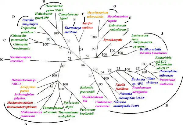 - Woese C, et al. (1990). "Towards a natural system of organisms: proposal for the domains Archaea, Bacteria, and Eucarya". PNAS USA. 87 (12): 4576–9. Bibcode:1990PNAS...87.4576W. doi:10.1073/pnas.87.12.4576. PMC 54159. PMID 2112744.