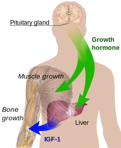 Growth in stature, determined by its various factors, results from the lengthening of bones via cellular divisions chiefly regulated by somatotropin (human growth hormone (hGH)) secreted by the anterior pituitary gland. Somatotropin also stimulates the release of another growth inducing hormone Insulin-like growth factor 1 (IGF-1) mainly by the liver. Both hormones operate on most tissues of the body, have many other functions, and continue to be secreted throughout life; with peak levels coinciding with peak growth velocity, and gradually subsiding with age after adolescence. The bulk of secretion occurs in bursts (especially for adolescents) with the largest during sleep.