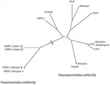 A phylogenetic tree of the pneumovirus & paramyxovirus families