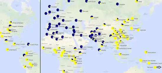 Approximately 10% of the variance in skin color occurs within regions, and approximately 90% occurs between regions.[94] Because skin color has been under strong selective pressure, similar skin colors can result from convergent adaptation rather than from genetic relatedness; populations with similar pigmentation may be genetically no more similar than other widely separated groups. Furthermore, in some parts of the world where people from different regions have mixed extensively, the connection between skin color and ancestry has substantially weakened.[95] In Brazil, for example, skin color is not closely associated with the percentage of recent African ancestors a person has, as estimated from an analysis of genetic variants differing in frequency among continent groups.[96]