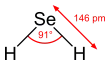 H2Se adopts a bent structure with a H−Se−H bond angle of 91°. Consistent with this structure, three IR-active vibrational bands are observed: 2358, 2345, and 1034 cm−1.