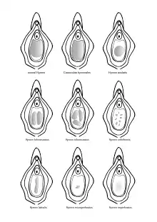 The hymen is a thin piece of mucosal tissue that surrounds or partially covers the external vaginal opening. It forms part of the vulva, or external genitalia, and is similar in structure to the vagina.[1][2]