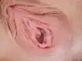![]() External genital organs of female. The labia minora have been drawn apart. | |