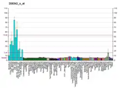 Male and female animals underwent a standardized phenotypic screen to determine the effects of deletion.[14][21] Twenty six tests were carried out and two phenotypes were reported. A reduced number of homozygous mutant embryos were identified during gestation, and none survived until weaning. The remaining tests were carried out on heterozygous mutant adult mice, and no significant abnormalities were observed in these animals.[14]