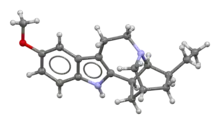 Ibogaine is an indole alkaloid that is obtained either by extraction from the iboga plant or by semi-synthesis from the precursor compound voacangine,[9][10] another plant alkaloid. The total synthesis of ibogaine was described in 1956.[11] Structural elucidation by X-ray crystallography was completed in 1960.[12][13][14]
