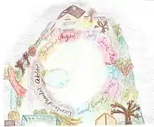 Over the past decade, it has been suggested that the Bouba/Kiki phenomenon is a case of ideasthesia.[16][17][18] Most people will agree that the star-shaped object on the left is named Kiki and the round one on the right Bouba.[19][20] It has been assumed that these associations come from direct connections between visual and auditory cortices.[20] For example, according to that hypothesis, representations of sharp inflections in the star-shaped object would be physically connected to the representations of sharp inflection in the sound of Kiki. However, Gomez et al.[16][21] have shown that Kiki/Bouba associations are much richer as either word and either image is associated semantically to a number of concepts such as white or black color, feminine vs. masculine, cold vs. hot, and others. These sound-shape associations seem to be related through a large overlap between semantic networks of Kiki and star-shape on one hand, and Bouba and round-shape on the other hand. For example, both Kiki and star-shape are clever, small, thin and nervous. This indicates that behind Kiki-Bouba effect lies a rich semantic network. In other words, our sensory experience is largely determined by the meaning that we assign to stimuli. Food description and wine tasting is another domain in which ideasthetic association between flavor and other modalities such as shape may play an important role.[22] These semantic-like relations play a role in successful marketing; the name of a product should match its other characteristics.[23]