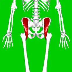 The iliacus arises from the iliac fossa on the interior side of the hip bone, and also from the region of the anterior inferior iliac spine (AIIS). It joins the psoas major to form the Iliopsoas.[1] It proceeds across the iliopubic eminence through the muscular lacuna to its insertion on the lesser trochanter of the femur.[1] Its fibers are often inserted in front of those of the psoas major and extend distally over the lesser trochanter.[2]