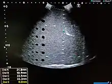 Imaging phantom, or simply phantom, is a specially designed object that is scanned or imaged in the field of medical imaging to evaluate, analyze, and tune the performance of various imaging devices.[1] A phantom is more readily available and provides more consistent results than the use of a living subject or cadaver, and likewise avoids subjecting a living subject to direct risk. Phantoms were originally employed for use in 2D x-ray based imaging techniques such as radiography or fluoroscopy, though more recently phantoms with desired imaging characteristics have been developed for 3D techniques such as SPECT, MRI, CT, Ultrasound, PET, and other imaging methods or modalities.