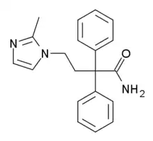 - Miyachi H, Kiyota H, Uchiki H, Segawa M (June 1999). "Synthesis and antimuscarinic activity of a series of 4-(1-Imidazolyl)-2,2-diphenylbutyramides: discovery of potent and subtype-selective antimuscarinic agents". Bioorg. Med. Chem. 7 (6): 1151–61. doi:10.1016/S0968-0896(99)00003-6. PMID 10428387.