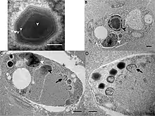 11. Gaia M, Benamar S, Boughalmi M, Pagnier I, Croce O, Colson P, Raoult D, La Scola B (2014). "Zamilon, a novel virophage with Mimiviridae host specificity". PLOS ONE. 9 (4): e94923. Bibcode:2014PLoSO...994923G. doi:10.1371/journal.pone.0094923. PMC 3991649. PMID 24747414.