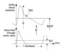 The relationship between the instantaneous values of aortic blood pressure and blood flow through the aortic valve over one heartbeat interval and their mean values are depicted in Fig.1. Their instantaneous values may be used in research; in clinical practice, their mean values, MAP and SV, are adequate.