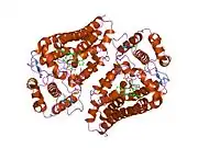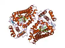 Indoleamine-pyrrole 2,3-dioxygenase (IDO or INDO EC 1.13.11.52) is a heme-containing enzyme physiologically expressed in a number of tissues and cells, such as the small intestine, lungs, female genital tract or placenta.[5] In humans is encoded by the IDO1 gene.[6] IDO is involved in tryptophan metabolism. It is one of three enzymes that catalyze the first and rate-limiting step in the kynurenine pathway, the O2-dependent oxidation of L-tryptophan to N-formylkynurenine, the others being indolamine-2,3-dioxygenase (IDO2)[7] and tryptophan 2,3-dioxygenase (TDO).[8] IDO is an important part of the immune system and plays a part in natural defense against various pathogens.[9][10] It is produced by the cells in response to inflammation and has an immunosuppressive function because of its ability to limit T-cell function and engage mechanisms of immune tolerance.[11] Emerging evidence suggests that IDO becomes activated during tumor development, helping malignant cells escape eradication by the immune system. Expression of IDO has been described in a number of types of cancer, such as acute myeloid leukemia, ovarian cancer or colorectal cancer. IDO is part of the malignant transformation process and plays a key role in suppressing the anti-tumor immune response in the body, so inhibiting it could increase the effect of chemotherapy as well as other immunotherapeutic protocols.[12][13][14]