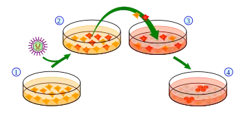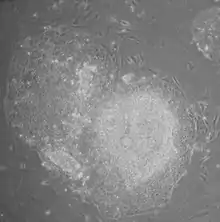 Induced pluripotent stem cells were first generated by Shinya Yamanaka's team at Kyoto University, Japan, in 2006.[1] They hypothesized that genes important to embryonic stem cell (ESC) function might be able to induce an embryonic state in adult cells. They chose twenty-four genes previously identified as important in ESCs and used retroviruses to deliver these genes to mouse fibroblasts. The fibroblasts were engineered so that any cells reactivating the ESC-specific gene, Fbx15, could be isolated using antibiotic selection.