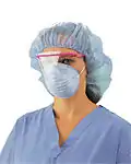 Components of PPE include gloves, gowns, bonnets, shoe covers, face shields, CPR masks, goggles, surgical masks, and respirators. How many components are used and how the components are used is often determined by regulations or the infection control protocol of the facility in question. Many or most of these items are disposable to avoid carrying infectious materials from one patient to another patient and to avoid difficult or costly disinfection. In the US, OSHA requires the immediate removal and disinfection or disposal of a worker's PPE prior to leaving the work area where exposure to infectious material took place.[17] For health care professionals who may come into contact with highly infectious bodily fluids, using personal protective coverings on exposed body parts improves protection.[18] Breathable personal protective equipment improves user-satisfaction and may offer a similar level of protection.[18] In addition, adding tabs and other modifications to the protective equipment may reduce the risk of contamination during donning and doffing (putting on and taking off the equipment).[18] Implementing an evidence-based donning and doffing protocol such as a one-step glove and gown removal technique, giving oral instructions while donning and doffing, double gloving, and the use of glove disinfection may also improve protection for health care professionals.[18]