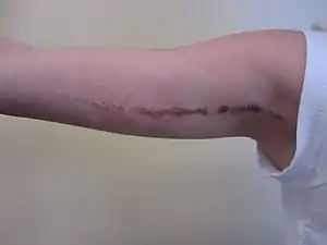 - Binodini Behera; Basanti Devi; Bibhuti B Nayak; Bharti Sahu; Bhabani Singh & Manas R Puhan (2013). "Giant Inflammatory Linear Verrucous Epidermal Nevus: Successfully Treated with Full Thickness Excision and Skin Grafting". Indian J Dermatol. 58 (6): 461–463. doi:10.4103/0019-5154.119959. PMC 3827519. PMID 24249899.