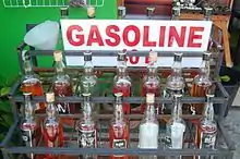 A wide range of volatile solvents intended for household or industrial use are inhaled as recreational drugs. This includes petroleum products (gasoline and kerosene), toluene (used in paint thinner, permanent markers, contact cement and model glue), and acetone (used in nail polish remover). These solvents vaporize at room temperature. Ethanol (the alcohol which is normally drunk) is sometimes inhaled, but this cannot be done at room temperature. The ethanol must be converted from liquid into gaseous state (vapor) or aerosol (mist),[7] in some cases using a nebulizer, a machine that agitates the liquid into an aerosol. The sale of nebulizers for inhaling ethanol was banned in some US states due to safety concerns.[8]
