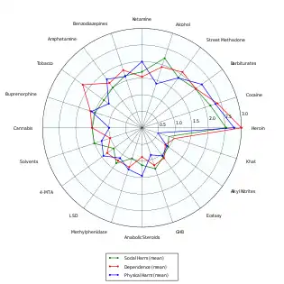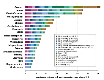 - Nutt, D; King, LA; Saulsbury, W; Blakemore, C (24 March 2007). "Development of a rational scale to assess the harm of drugs of potential misuse". Lancet. 369 (9566): 1047–53. doi:10.1016/s0140-6736(07)60464-4. PMID 17382831. S2CID 5903121.
