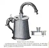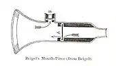 The idea of directly delivering medication into the lungs was based on ancient traditional cures that involved the use of aromatic and medicinal vapours. These did not involve any special devices beyond the apparatus used for burning or heating to produce fumes. Early inhalation devices included one devised by John Mudge in 1778. It had a pewter mug with a hole allowing attachment of a flexible tube. Mudge used it for the treatment of coughs using opium. These devices evolved with modifications by Wolfe, Mackenzie (1872) and better mouth attachments such as by Beigel in 1866. Many of these early inhalers needed heat to vapourize the active chemical ingredient. The benefits of forced expiration and inspiration to treat asthma were noted by J. S. Monell in 1865. Chemicals used in inhalers included ammonia, chlorine, iodine, tar, balsams, turpentine camphor and numerous others in combinations.[14] Julius Mount Bleyer used a variation in 1890 in New York.[15]