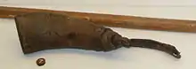 Oil Jar in cow horn for mosquito-repelling pitch oil, a by-product of the distillation of wood tar. Carried in a leather strap on a belt. Råneå, Norrbotten, since 1921 in Nordiska museet, Stockholm.[32]