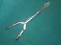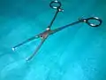 Das's modification to the long curved delivery forceps with the blades lying loose. The one with the lock is the left blade (judged with respect to the mother).