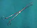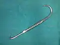 Cusco's self retaining bivalve vaginal speculum (closed) seen from the left. It is very much used in taking smears from the vagina for Papanicolaou test and routine examinations.