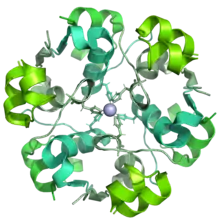 Insulin glulisine is a rapid-acting insulin analogue that differs from human insulin in that the amino acid asparagine at position B3 is replaced by lysine and the lysine in position B29 is replaced by glutamic acid.[4] It was developed by Sanofi-Aventis and is sold under the trade name Apidra.[5] When injected subcutaneously, it appears in the blood earlier than human insulin.[6] When used as a meal time insulin, the dose is to be administered within 15 minutes before or 20 minutes after starting a meal.[7] Intravenous injections may also be used for extreme hyperglycemia, but must be performed under the supervision of a medical professional.[2]