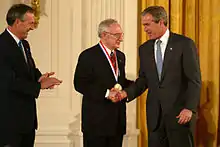 Sidney Pestka of Rutgers University, seen here receiving the National Medal of Technology.