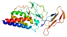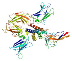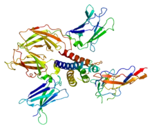 The structure of the stable complex formed when IL-2 binds to the high affinity receptor has been determined using X-ray crystallography. The structure supports a model wherein IL-2 initially binds to the α chain, then the β is recruited, and finally γ.[2][3][4]
