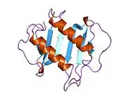 Interleukin 8 (IL-8 or chemokine (C-X-C motif) ligand 8, CXCL8) is a chemokine produced by macrophages and other cell types such as epithelial cells, airway smooth muscle cells[3] and endothelial cells. Endothelial cells store IL-8 in their storage vesicles, the Weibel-Palade bodies.[4][5] In humans, the interleukin-8 protein is encoded by the CXCL8 gene.[6] IL-8 is initially produced as a precursor peptide of 99 amino acids which then undergoes cleavage to create several active IL-8 isoforms.[7] In culture, a 72 amino acid peptide is the major form secreted by macrophages.[7]