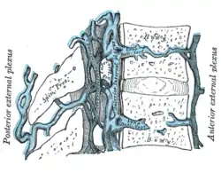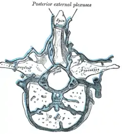 Transverse section of a thoracic vertebra, showing the vertebral venous plexuses.