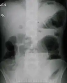 Causes of bowel obstruction include adhesions, hernias, volvulus, endometriosis, inflammatory bowel disease, appendicitis, tumors, diverticulitis, ischemic bowel, tuberculosis and intussusception.[1][2] Small bowel obstructions are most often due to adhesions and hernias while large bowel obstructions are most often due to tumors and volvulus.[1][2] The diagnosis may be made on plain X-rays; however, CT scan is more accurate.[1] Ultrasound or MRI may help in the diagnosis of children or pregnant women.[1]