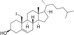 Iodocholesterol, or 19-iodocholesterol, also as iodocholesterol (131I) (INN), is a derivative of cholesterol with an iodine atom in the C19 position and a radiopharmaceutical.[1][2] When the iodine atom is a radioactive isotope (iodine-125 or iodine-131), it is used as an adrenal cortex radiocontrast agent in the diagnosis of patients suspected of having Cushing's syndrome, hyperaldosteronism, pheochromocytoma, and adrenal remnants following total adrenalectomy.[1][2]