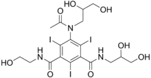 Ioxilan is a diagnostic contrast agent. It is injected intravenously before taking X-ray images to increase arterial contrast in the final image. It was marketed in the US under the trade name Oxilan by Guerbet, L.L.C., but has been discontinued in 2017.[1]