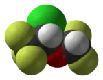 Similar to many general anesthetics, the exact mechanism of the action has not been clearly delineated.[12] Isoflurane reduces pain sensitivity (analgesia) and relaxes muscles. Isoflurane likely binds to GABA, glutamate and glycine receptors, but has different effects on each receptor. Isoflurane acts as a positive allosteric modulator of the GABAA receptor in electrophysiology studies of neurons and recombinant receptors.[13][14][15][16] It potentiates glycine receptor activity, which decreases motor function.[17] It inhibits receptor activity in the NMDA glutamate receptor subtypes. Isoflurane inhibits conduction in activated potassium channels.[18] Isoflurane also affects intracellular molecules. It activates calcium ATPase by increasing membrane fluidity . It binds to the D subunit of ATP synthase and NADH dehydrogenase.