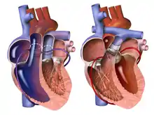 In 1950, American surgeons Alfred Blalock and C. Rollins Hanlon introduced the Blalock-Hanlon atrial septectomy, which was then routinely used to palliate patients.[9] This would have effectively reduced early mortality rates, particularly in cases with no concomitant shunts, but is unlikely to have reduced late mortality rates.