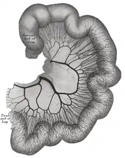 ![]() Loop of small intestine showing distribution of intestinal arteries. | |