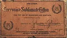 The company sold medicated plasters such as Johnson & Johnson's Black Perfect Taffeta Court Plaster[19] and also manufactured the world's first sterile surgical products, including sutures, absorbent cotton, and gauze.[20] The company published "Modern Methods of Antiseptic Wound Treatment", a guide on how to do sterile surgery using its products, and in 1888, distributed 85,000 copies to doctors and pharmacists across the United States.[21]:3–99 The manual was translated into three languages and distributed worldwide.[21] The first commercial first aid kit was designed in 1888 to support railroad construction workers, who were often hundreds of miles from medical care.[21] The kits included antiseptic emergency supplies and directions for field use. In 1901, the company published the Handbook of First Aid, a guide on applying first aid.[21]